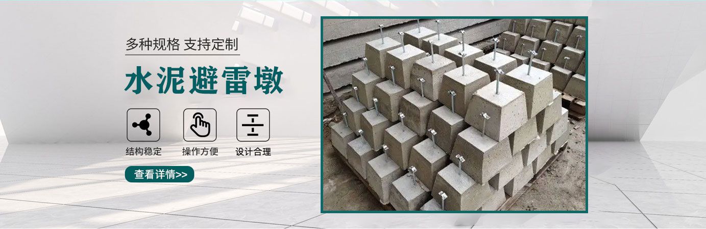 About us宏印水泥避雷墩廠是一家專業從事防雷工程設計與施工的企業。 多年來,隨著公司業務持續健康的發展、技術實力不斷增強、專業人才不斷積累和素質極大提高,使企業發展至今成為省內為數不多內部架構合理完善的防雷企業。 施工部:本公司專業防雷施工隊伍,承接各種大小防雷工程施工,包括: 防雷工程: 避雷針支架水泥墩銷售,規格齊全,也可定做。 新建建筑物防直擊雷、舊建筑物防直擊雷整改、機房防雷工程、智能小區監控系統防雷、程控交換機綜合防雷、電力變電站接地工程、通信防雷及接地 ,防雷咨詢、專業培訓、技術解答、專業建議;防雷工程報建及驗收;防雷工程雷擊故障修復;防雷工程維護和保養等。提供檢測在線運行中防雷產品合格指標的專業測試服務。 不斷的學習是追求進步和積蓄能力的渠道;重視競爭,競爭促進了企業的進步和發展;重視業績,業績是企業生存和發展的關鍵;企業、員工和客戶是一個共同體,共同的進步是我們共同追求的目標 。...